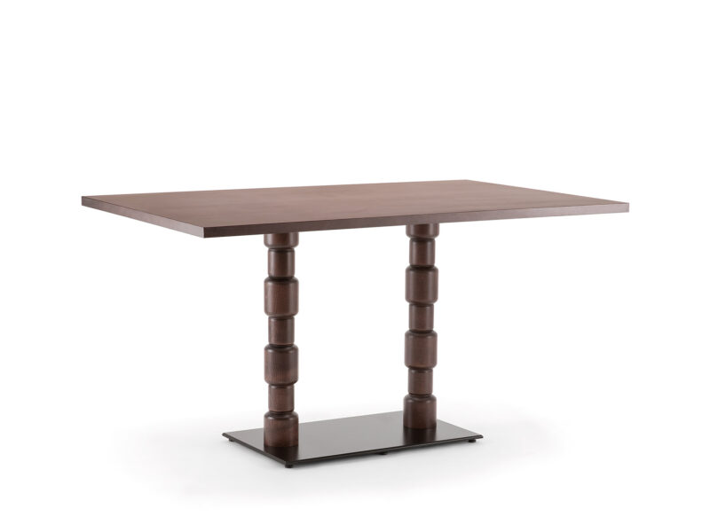 The warmth of the solid wood, and the metal bases, represent the perfect match to furnish luxury spaces. The Berlino collection has a distinctive profile which highlights its unique base. The top is available beech veneered with solid wooden edge or laminate.