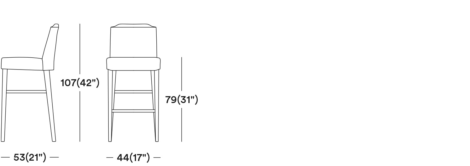 Perfect for bars and luxury hotels, the Boston bar stool incorporates a show wood plinth, panelled upholstered back and piped seams for a detailed look. The seat is made of an upholstered structure enriched by a solid wood frame and legs. Choose from a high quality selection of fabrics and wood stains to complete the design.