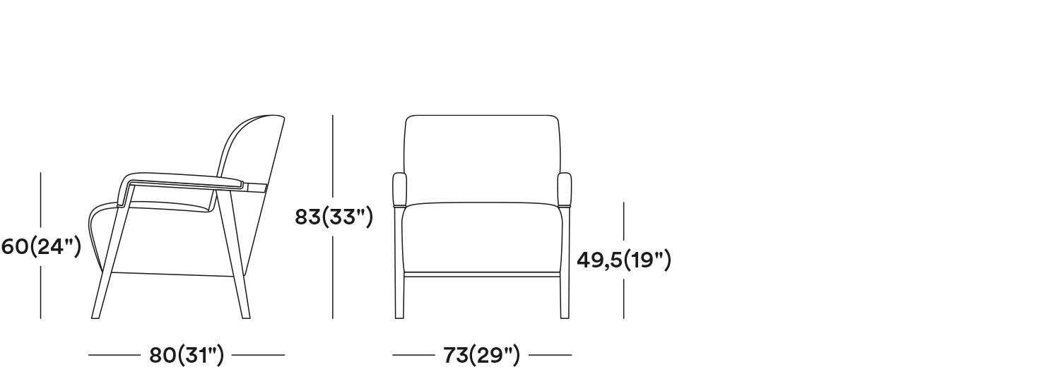 The Carter collection consists in a range of surprisingly cosy armchairs, sofa and ottoman which brings you back at 70’s in terms of shapes and textiles but with a modern touch that makes this collection suitable for any occasion. Wooden legs and plump upholstery give the Carter lounge chair a contrasting range of shapes that work well together. Comfortable and stylish, you can upholster this lounge chair in a wide range of fabrics and customise the legs with a choice of wood stains.