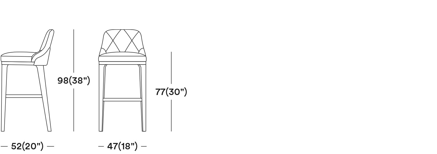 Sturdy wooden legs, along with the gentle yet strong design make the Gill a staple bar stool for restaurants and hotels. Featuring a curved contrasting panel on the backrest, the Gill bar stool can be upholstered in your choice of fabric or leather. The high quality and wide selection of both fabrics and wood stains will make this chair customisable to match every venue at its best.