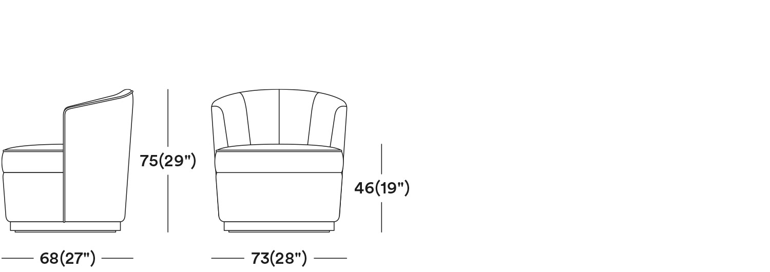 The solid frame tapers towards the base to where it stands on a swivelling pedestal. With a wide selection of fabrics and wood finishes, the Lilian lounge chair could be customised to match every venue at its best.