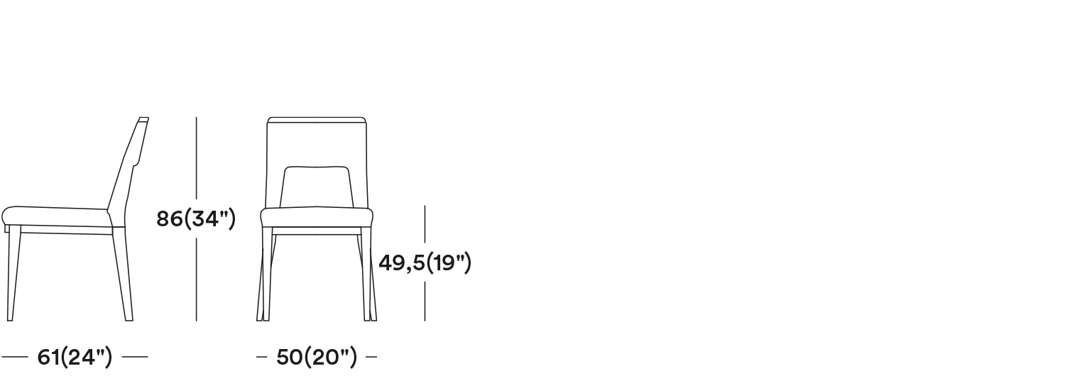 This stunning upholstered chair is characterised by simple but sophisticated design. The wooden base, the wooden detail on the backrest and the legs enrich this collection. The huge offer of fabrics and wood stains will make this side chair a perfect piece for every venue.