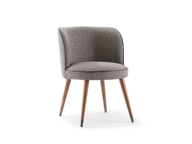 Le gambe in legno massello, arricchite da eleganti piedini in metallo donano un tocco moderno alla seduta. Da abbinare al piping sul rivestimento e alle gambe, è disponibile una vasta gamma di tessuti che completano questo prodotto.