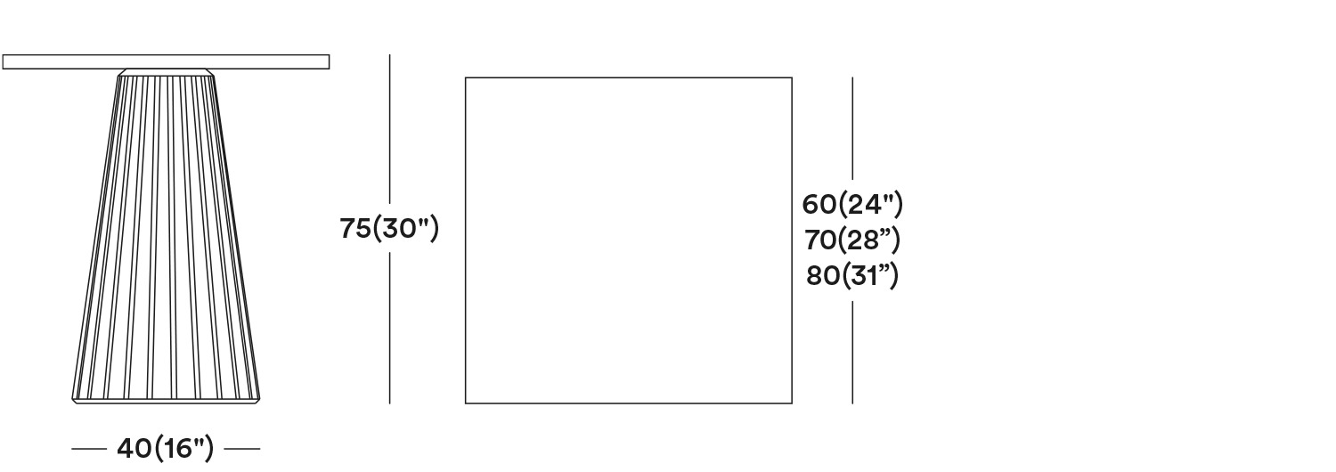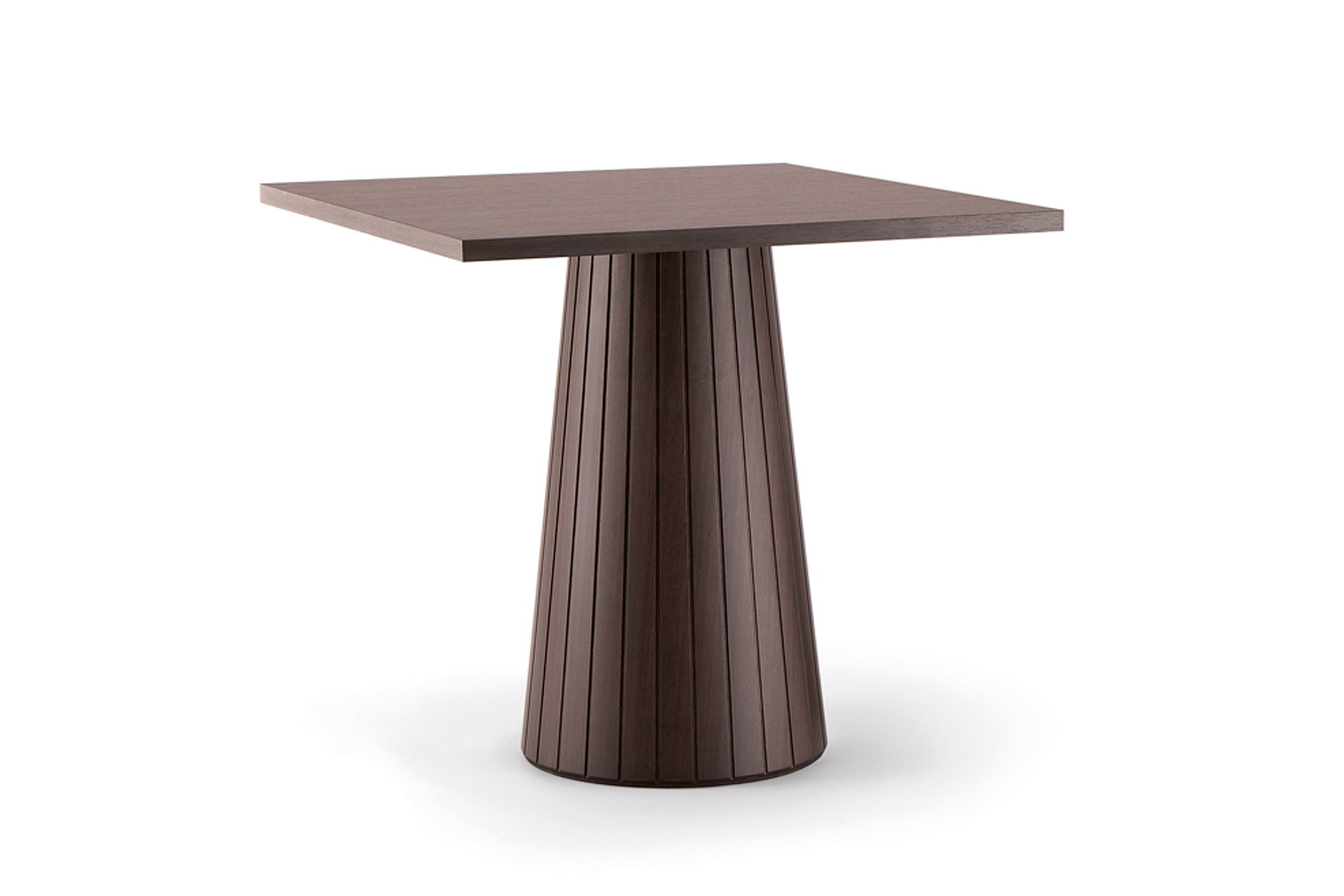 Questo insolito tavolo in legno, con scanalature verticali sulla base, è disponibile in due diverse dimensioni e in un’ampia scelta di finiture.